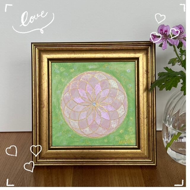 若草の芽吹く緑と淡いピンクのまっさらなハートをイメージして